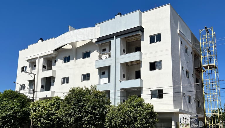 Já nesta fase de acabamentos, estamos finalizando pinturas e instalando as esquadrias. Muito em breve veremos o Residencial Atlântico pronto e se destacando em Querência.